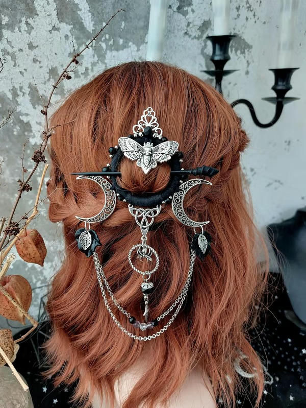 🌙Step into the realm of moonlight and magic with this one-of-a-kind Goddess of the Night Hair Pin.